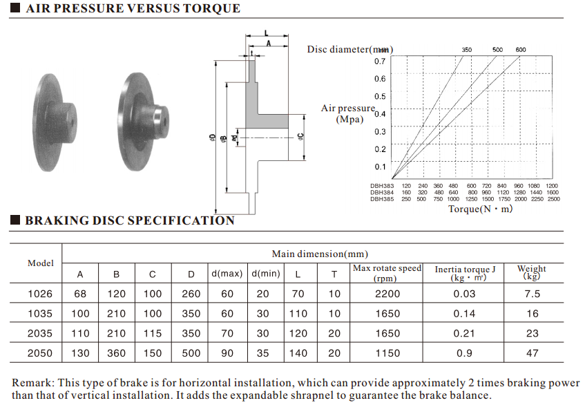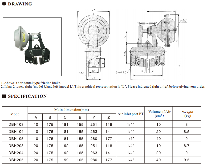DBH model horizontal type air caliper disc brake ADVANTAGE: