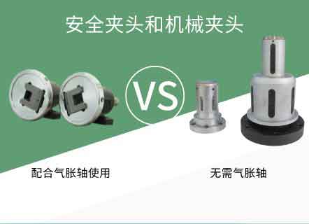 安全夹头一般需要配合气涨轴来完成客户的工况收卷和放卷,而机械夹头则无需气涨轴,可以无轴收放卷,一般须配合液压上料机构。