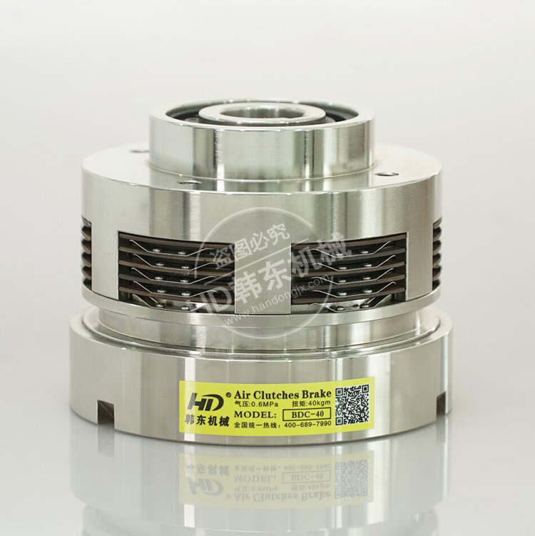 多片式气动离合器(多片摩擦式离合器)是由多片摩擦圆盘在气压的作用下咬合,不滑落,连接确实。采用一体化构造,安装简单,小体积大扭矩。对比齿合型气动离合器,多片气动离合器更适用于高速连接、高速运转。韩东BDC系列多片气动离合器目前广泛应用于工业自动化、包装印刷、工程环卫车辆水泵风机等工况中。