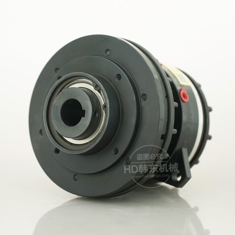 气动离合制动器HACB-H产品反应速度快,适用于离合及制动。不拆卸也可交换摩擦片,离合器和制动器都是靠空气压来独立作动,排放空气后,靠复归弹簧来放开。用驱动圆盘来输入,靠轴来输出。靠法兰还有转矩卡杆来防止制动器用空气室滑转。空气室内充入空气的话,离合器的场合是靠空气压使离合器用圆盘沿轴方向滑动,和摩擦板接触。制动器的场合是带摩擦板的活塞和制动器用的圆盘发生接触。