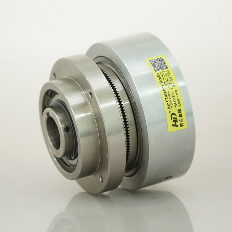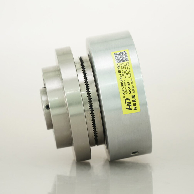 气动离合器HTP产品采用两枚全周带齿轮的圆盘在气压作用下咬合传递稳定转矩,体积小,传动力矩大,能在高速运转中快速脱离,能适应较恶劣的工况条件即便是油污环境亦能正常工作,不会影响其工作性能。齿合时基本无滑差,传动精度更好,传动转矩与温度无关,与电磁离合器相比能在高速旋转中联接和放开