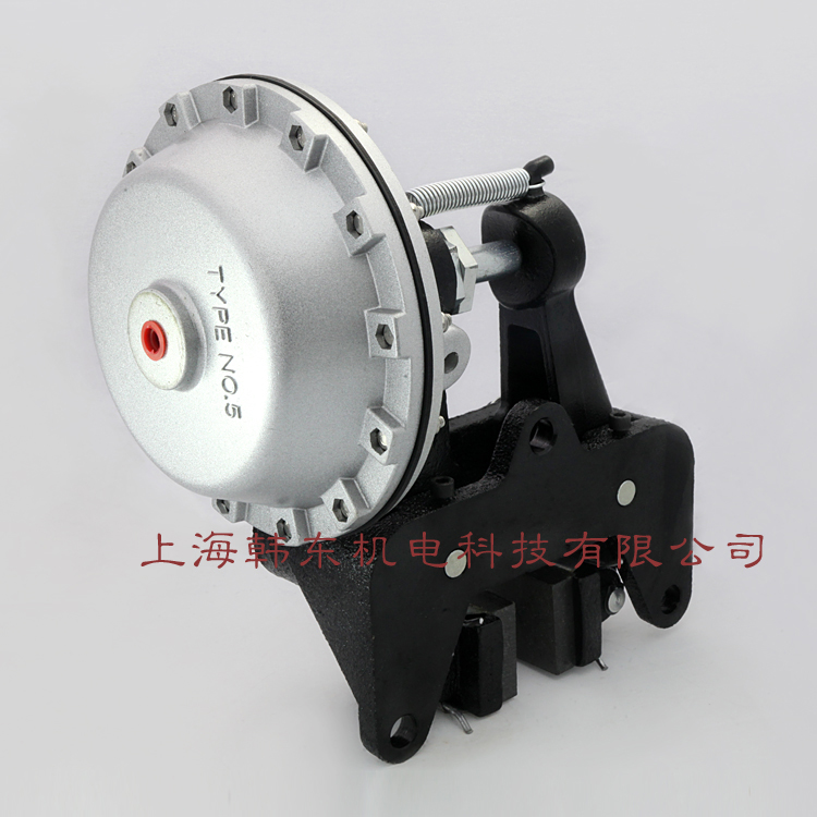 DBH型气动制动器是利用气压的调整,可在较大范围调整扭矩,适用于紧急制动和张力控制。利用手动式制动器可无气压情况下压缩弹簧长时间保持制动,调整得出必要的扭矩。