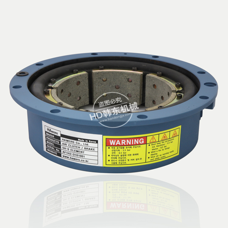 SH型工业气胎离合器刹车(气动刹车器)通过气囊注入空气使摩擦板与滚轮内壁咬合,这时旋转中的轮毂被咬合后传输了扭力一起旋转则为离合器,咬合后被固定则是刹车。SH鼓式离合器刹车可以视具体工况而定。