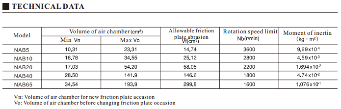 1) NAB model (standard) air shaft brake, installed conical shaft spanned tube with peg onto shaft, friction lining can be replaced without changing anything of the mechanical equipment. It reduced heat generated from friction by cooling plate mounted on disc with hub. Torque is from 53-636N.m.