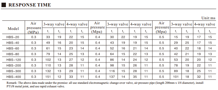 HBS model Pneumatic tooth clutch Characaters: